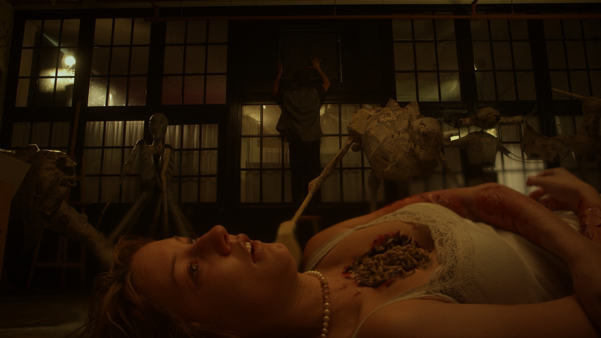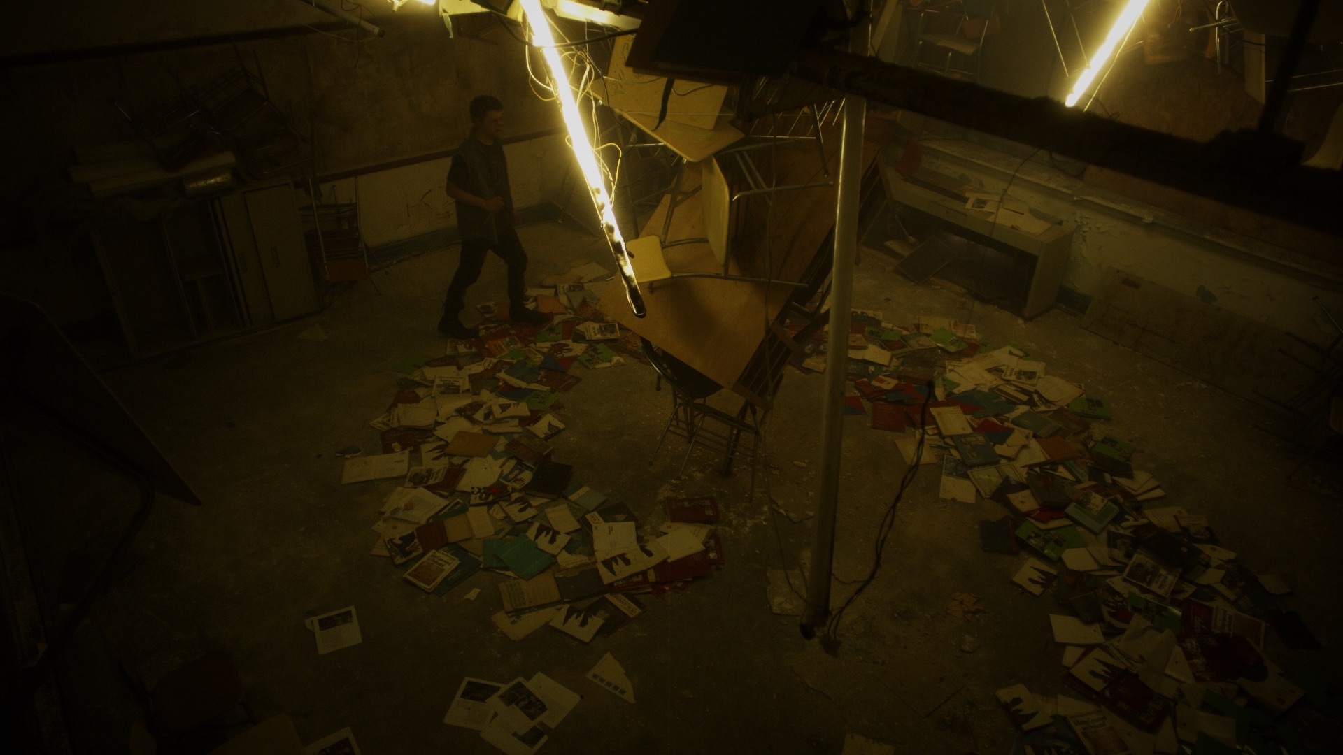 Summer break is almost over. Four youngsters are punished by having to clean the school and can only leave when everything is spick-and-span. At first sight, it looks like the school was left by a very enthused group of students, but soon they realize a horrible event has taken place. While trying to unravel the mysterious havoc, they are chased by four marauding, masked people. These four Gas Masks seem like the Four Horsemen of the Apocalypse, as they represent Famine, Pestilence, War, and finally Death. They set traps and hunt the young students down. While the youngsters are fighting to survive, they discover that they’re more involved with the ravaged school than they first thought.